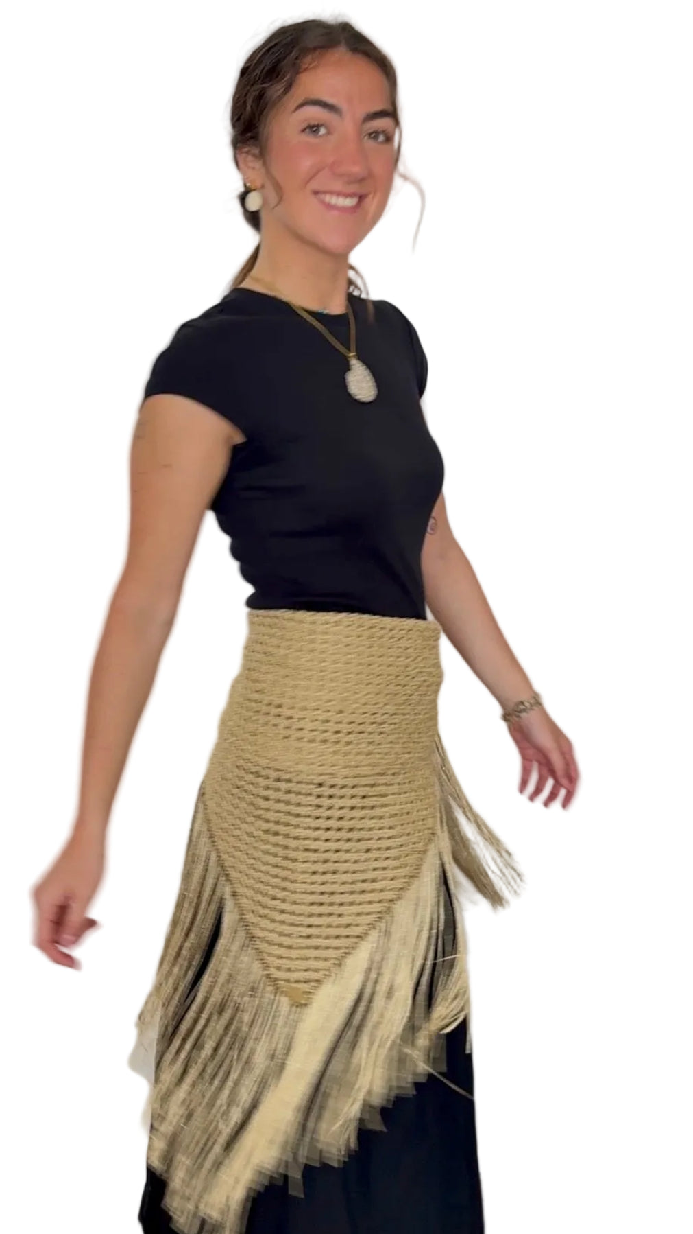 Su forma en pico y sus flecos largos crean una caída elegante y favorecedora perfecta para acompañar vestidos, conjuntos de ceremonia o looks más especiales cuando buscas un complemento distinto y con personalidad.
