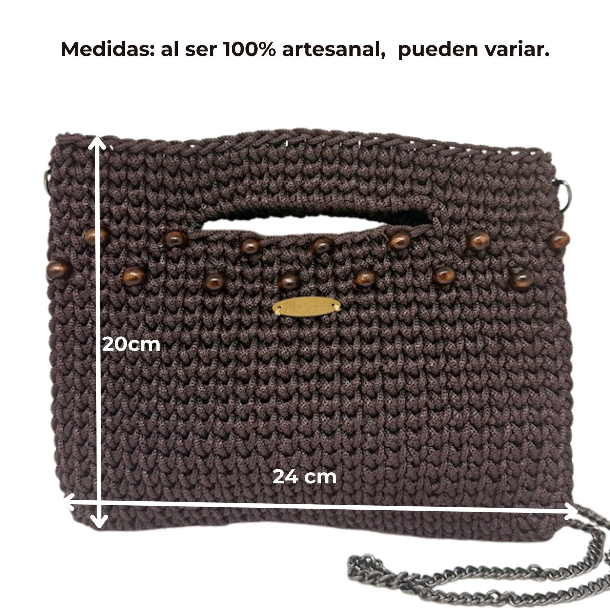 Su versatilidad te permite llevarlo de dos formas: en la mano, gracias a su práctico diseño, o cruzado al hombro con su cadena metálica larga y ligera.