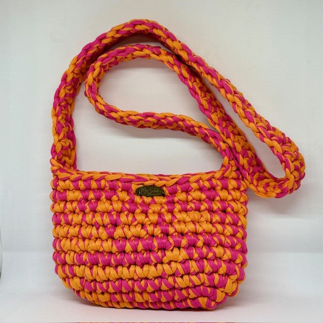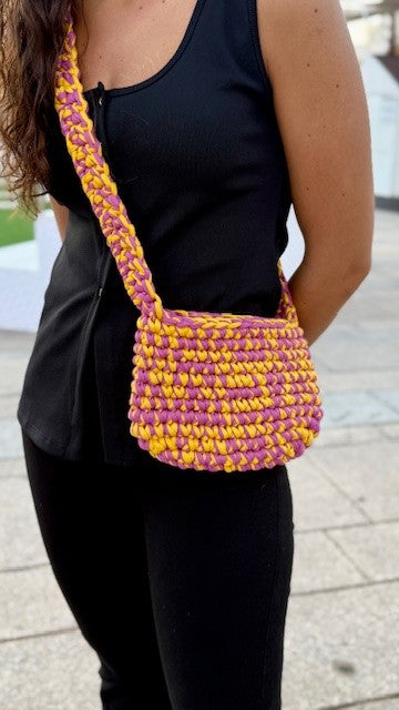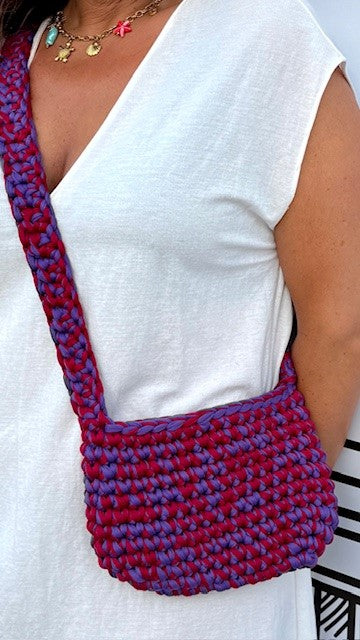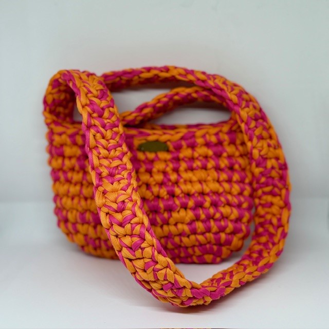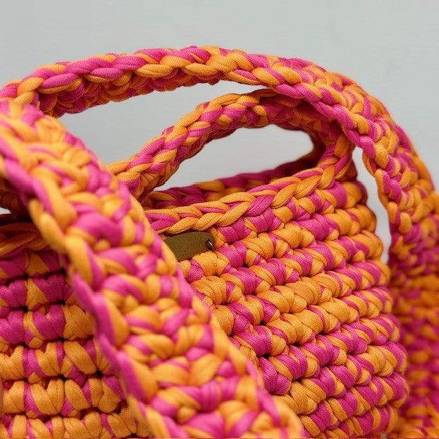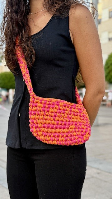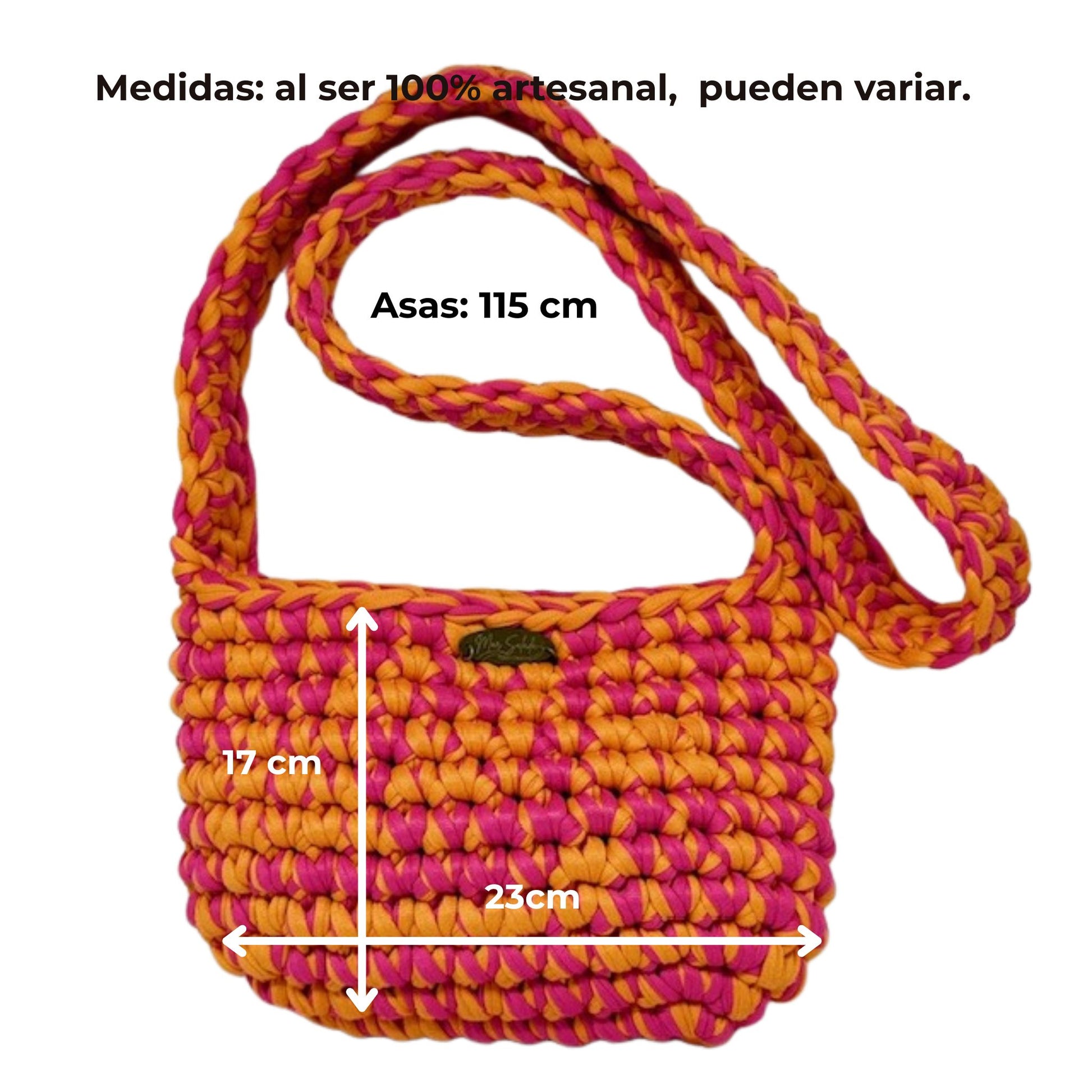 Su diseño es ligero, vibrante y alegre pero con el carácter que le aporta el trenzado grueso. Incluye un asa larga, mullida y cómoda, tejida a mano a juego con el cuerpo del bolso y un cierre con imán que mantiene todo en su sitio, sin perder frescura ni comodidad.