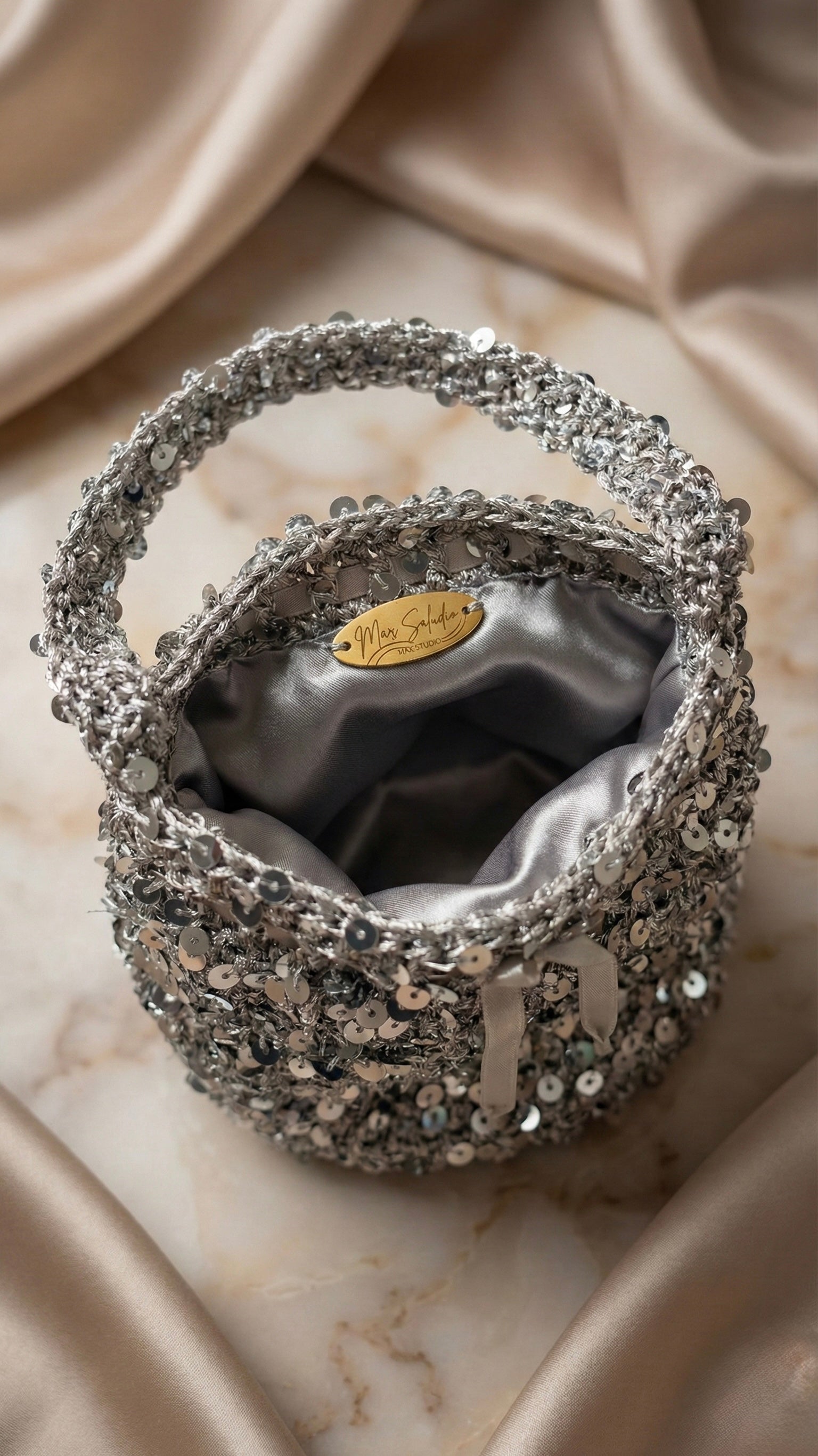 Este bolso es una joya de artesanía que captura la luz con cada movimiento.