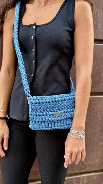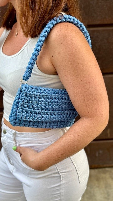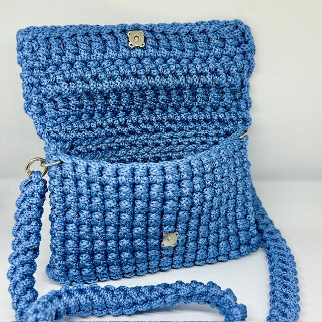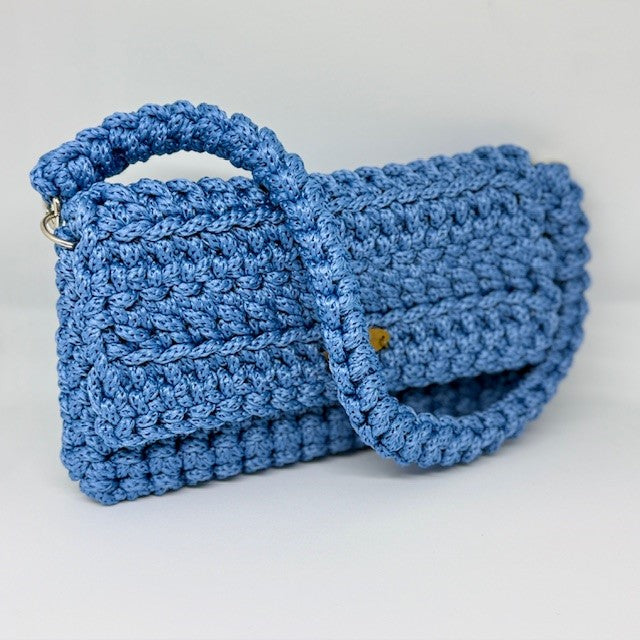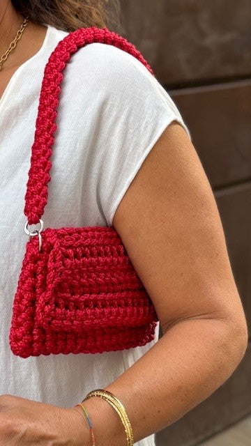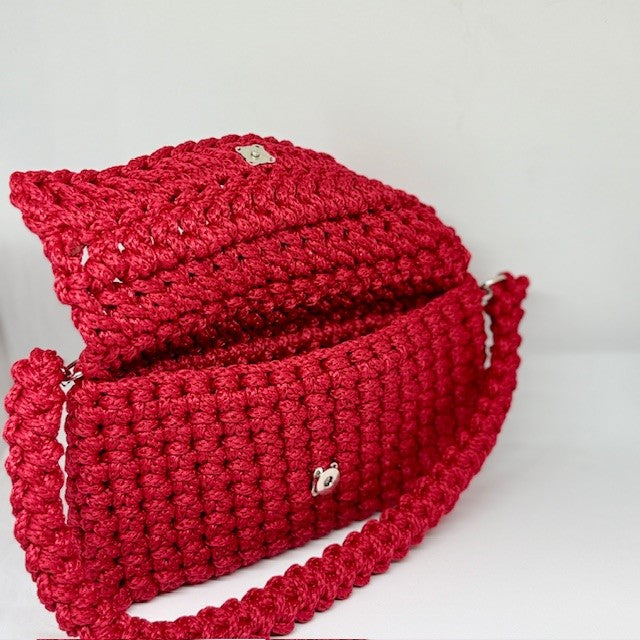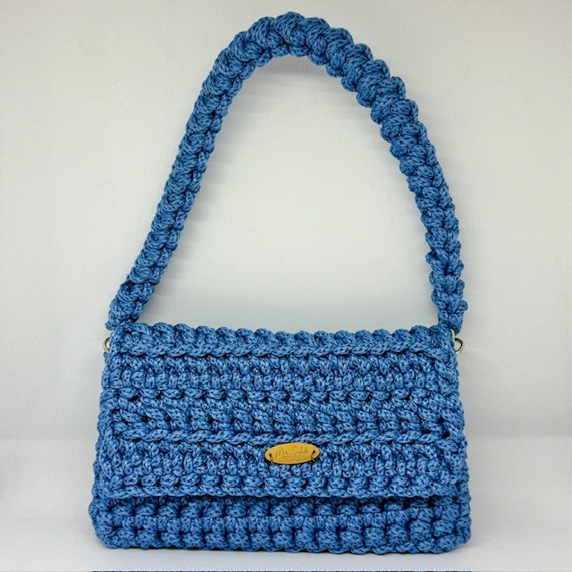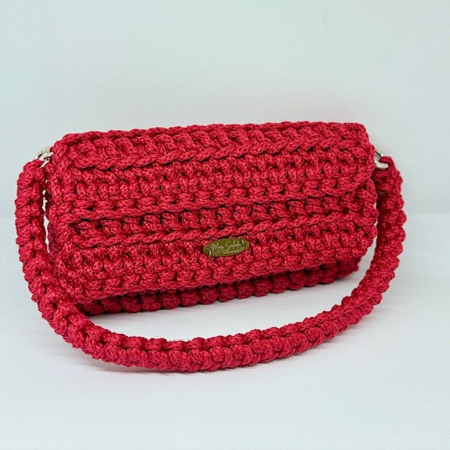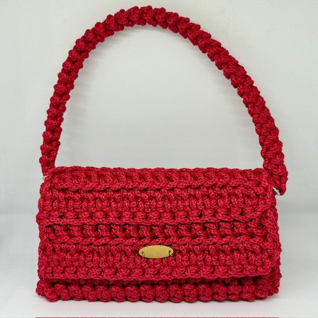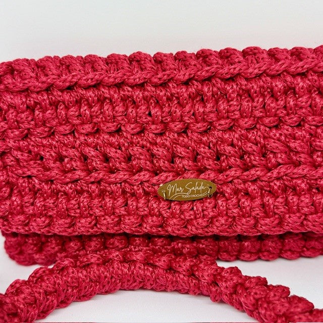 - Asa corta de 45 cm, tejida a croché con el mismo material, ideal para llevarlo al hombro o en la mano.