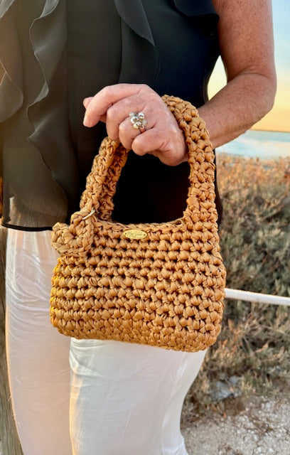Ligero y con asas tejidas en el mismo material, es perfecto para llevar lo esencial con estilo y un toque sofisticado. Su cierre de imán mantiene todo seguro, mientras su textura suave y su diseño artesanal hacen de Caleta una pieza única para cualquier ocasión.